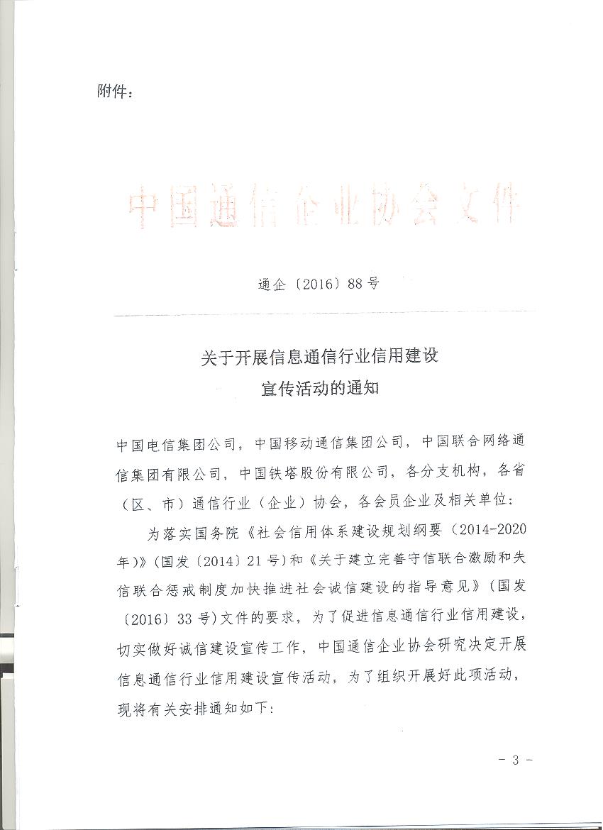 轉(zhuǎn)發(fā)中國通信企業(yè)協(xié)會(huì)關(guān)于開展信息通信行業(yè)信用建設(shè)宣傳活動(dòng)的通知