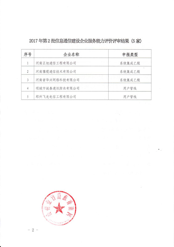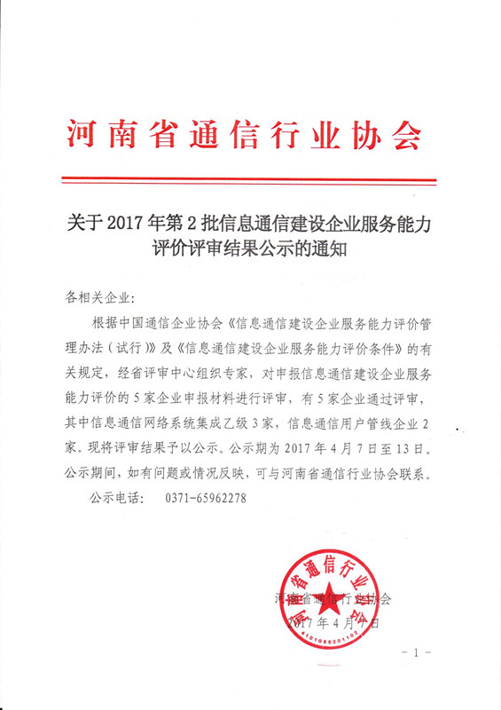 關(guān)于2017年第2批信息通信建設(shè)企業(yè)服務(wù)能力評價評審結(jié)果公示的通知