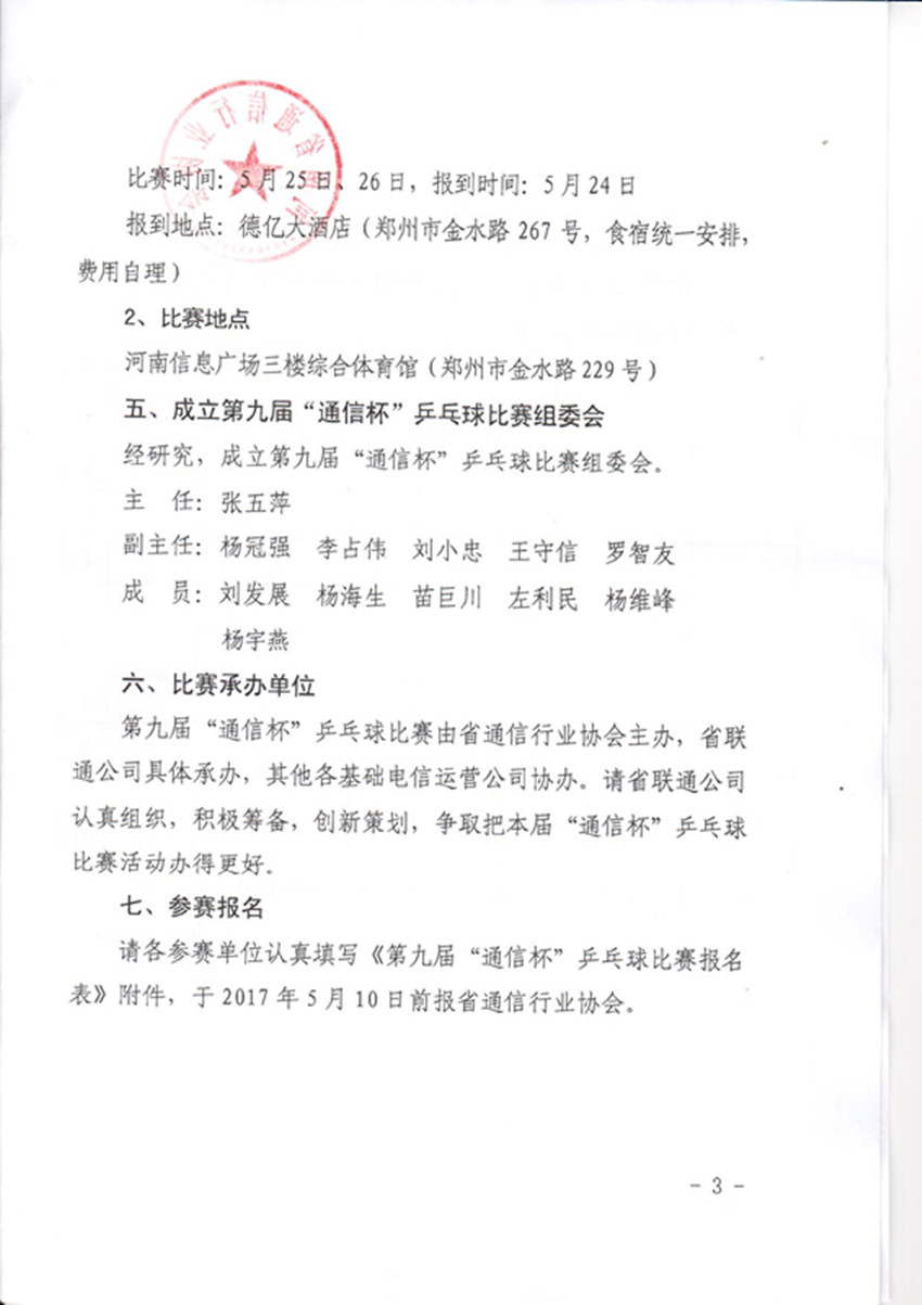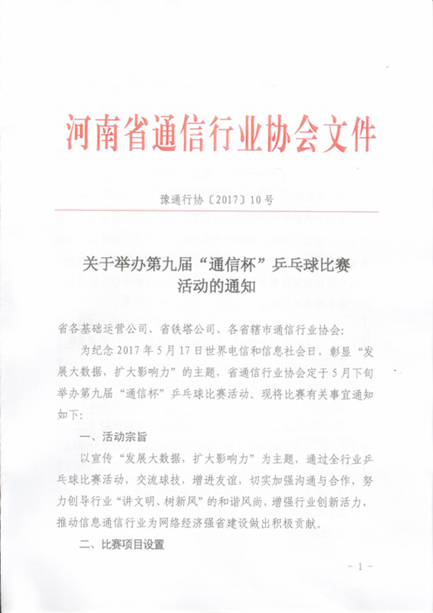 關(guān)于舉辦第九屆“通信杯”乒乓球比賽活動(dòng)的通知