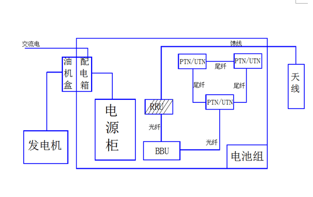 4、送電。待發(fā)電機運轉(zhuǎn)正常后,閉合油機交流輸出空開向基站端送電,閉合基站電源閘刀,將交流配電箱“油機市電”轉(zhuǎn)換開關由“市電”側(cè)轉(zhuǎn)向“油機”側(cè),并逐級開啟基站交流負載空開供電。若遇負荷大于發(fā)電機供電能力,可選擇性斷開部分次要用電設備(如基站空調(diào)),當市電恢復油機停止后可再行閉合之前斷開的相關開關;