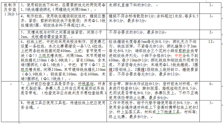競賽時間為:光纜接續(xù)40分鐘,拉線制作安裝30分鐘。
