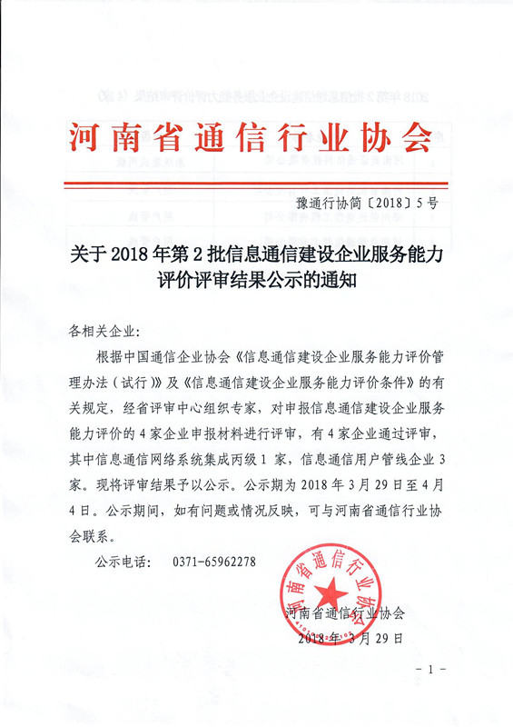 關(guān)于2018年第2批信息通信建設(shè)企業(yè)服務(wù)能力評價評審結(jié)果公示的通知