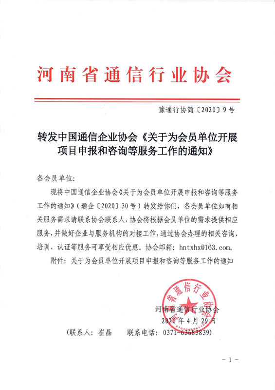 轉(zhuǎn)發(fā)中國(guó)通信企業(yè)協(xié)會(huì)《關(guān)于為會(huì)員單位開(kāi)展項(xiàng)目申報(bào)和咨詢等服務(wù)工作的通知》