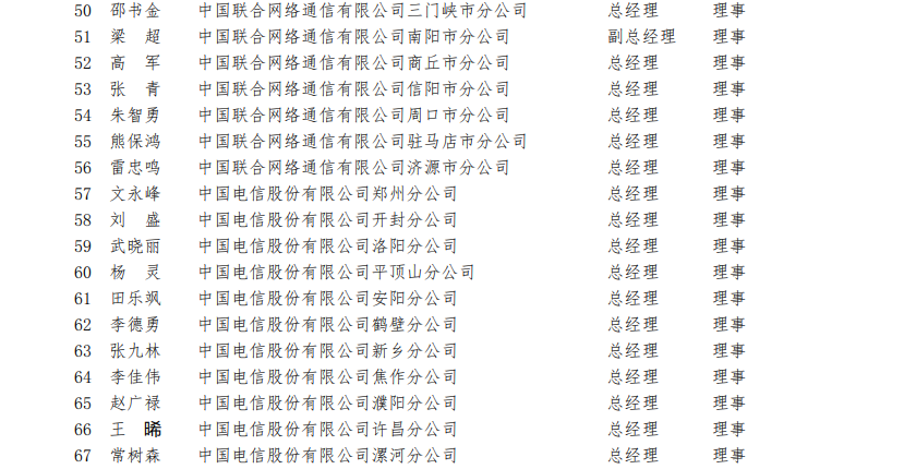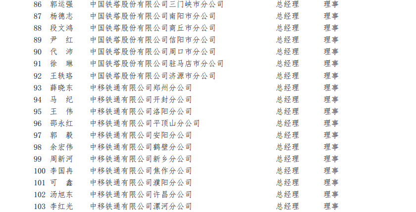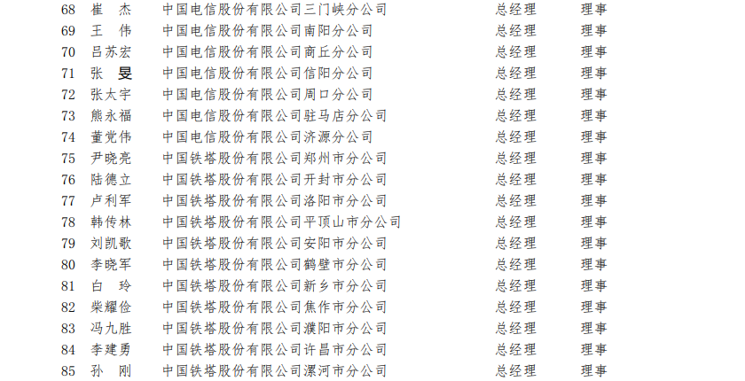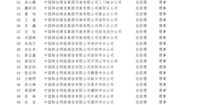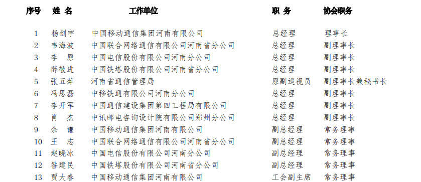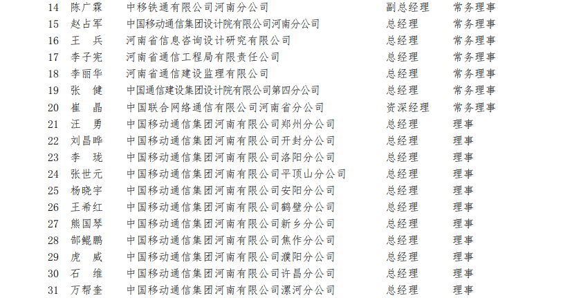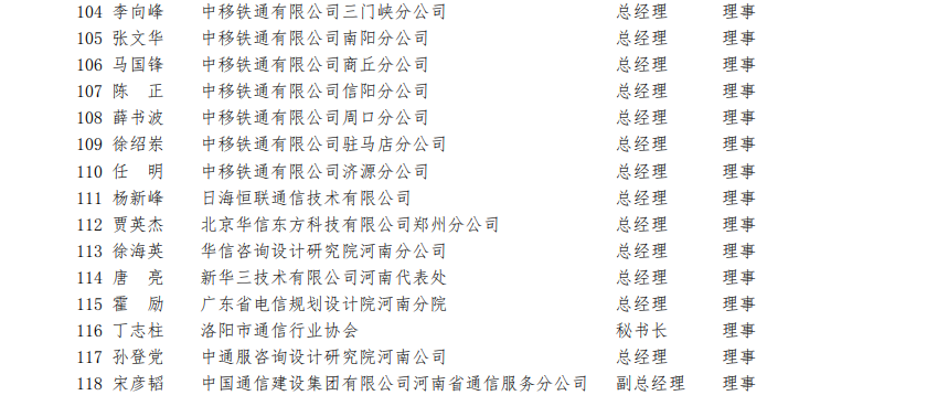 河南省通信行業(yè)協(xié)會(huì)第四屆理事會(huì)理事名單(118 名)?