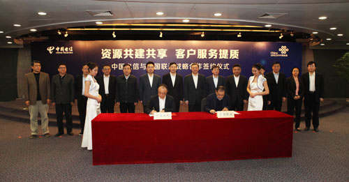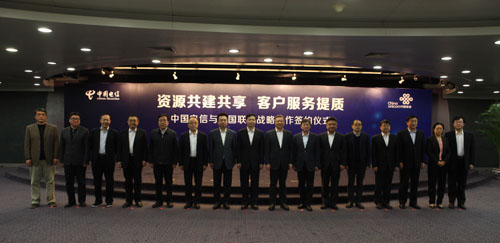 CNII網(wǎng)訊 2016年1月13日,中國電信集團(tuán)公司(“中國電信”)與中國聯(lián)合網(wǎng)絡(luò)通信集團(tuán)有限公司(“中國聯(lián)通”)在北京舉行“資源共建共享 客戶服務(wù)提質(zhì)”戰(zhàn)略合作協(xié)議簽約儀式。中國聯(lián)合網(wǎng)絡(luò)通信集團(tuán)有限公司黨組書記、董事長王曉初、總經(jīng)理陸益民、副總經(jīng)理邵廣祿,中國電信集團(tuán)公司總經(jīng)理?xiàng)罱堋⒏笨偨?jīng)理?xiàng)钚コ鱿⒐餐娮C簽約。中國電信高同慶副總經(jīng)理、中國聯(lián)通熊昱副總經(jīng)理分別代表雙方簽約。