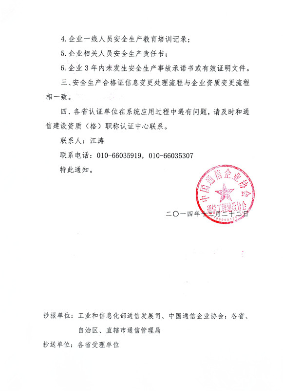 關于公布2014年第4季度獲得通信建設工程企業(yè)《安全生產